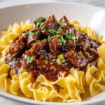 For a family-style feast, serve the slow cooker directly at the table so everyone can help themselves. Alternatively, plate it with a generous heap of noodles underneath the shredded beef and drizzle some extra cooking sauce on top. Another fun idea is to use the beef and noodles as a filling for a hearty pot pie or to top a baked potato for a comforting twist.