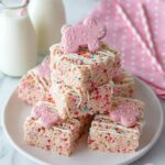 Delight in these playful Animal Cookie Rice Krispie Treats, a fun twist on the classic marshmallow and cereal dessert. Loaded with crunchy Mother’s circus animal cookies, colorful nonpareils, and drizzled with pink and white candy melts, these treats are perfect for parties or a sweet snack that will bring smiles to kids and adults alike.