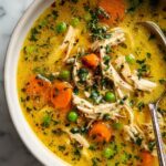 This Anti Inflammatory Turmeric Chicken Soup is a nourishing, flavorful recipe designed to boost immunity and reduce inflammation. Made with wholesome ingredients like turmeric, fresh ginger, and nutrient-rich vegetables, this hearty soup combines tender shredded chicken, coconut milk, and a blend of aromatic spices, creating a comforting and healthy meal perfect for any season.