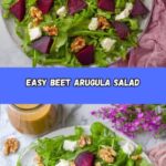 A vibrant and nutritious Beet Salad featuring peppery arugula, sweet roasted beets, crunchy candied walnuts, and creamy feta cheese, all tossed in a tangy honey Dijon dressing. This fresh, no-cook salad is perfect for a light lunch or an elegant starter.