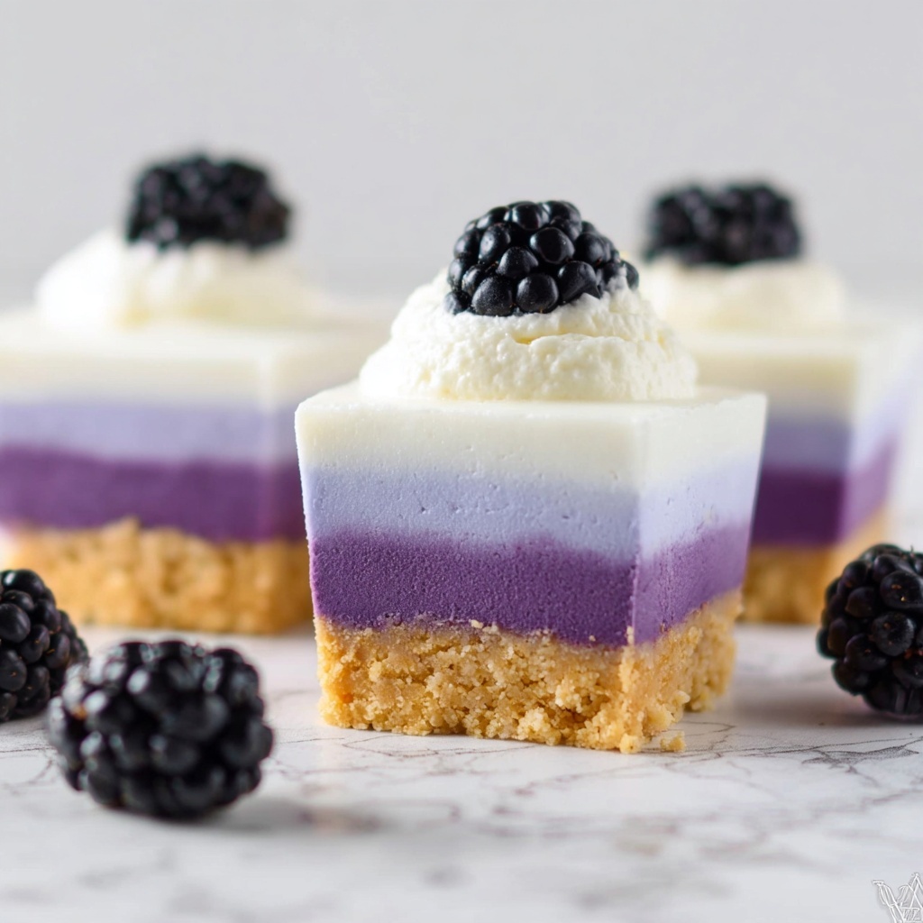 These Blackberry Cheesecake Bites are delightful no-bake treats perfect for any occasion. Combining a crumbly shortbread cookie crust with a creamy, vanilla-flavored cheesecake filling and topped with fresh blackberries, they offer a refreshing burst of flavor in every bite. Easy to prepare and visually appealing, they make a great dessert or party snack.