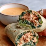 - Roll and serve: Fold the sides of each tortilla inward and roll tightly from one end to the other to secure the fillings. Slice the wraps in half if desired and serve warm with lemon wedges on the side.