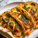 These Cheesy Pulled Chicken Tacos offer a quick and delicious meal featuring tender pulled chicken seasoned with classic Mexican spices, smothered in melted cheddar and Monterey Jack cheeses, and piled into warm tortillas with fresh, optional toppings.