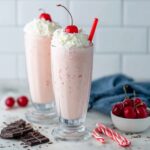 - Assemble and Serve: Pour the milkshake into glass jars or cups. Stir in chocolate shavings gently. Top each serving with whipped topping and a stemmed maraschino cherry. Serve immediately with a straw for a delightful festive treat.