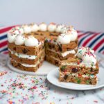 This decadent Chocolate Chip Cookie Layer Cake combines the beloved flavors of classic chocolate chip cookies with the elegance of a layered cake. Featuring soft, buttery cookie layers studded with semi-sweet chocolate chips and colorful confetti sprinkles, this cake is frosted with a rich vanilla buttercream and finished with more sprinkles for a festive touch—perfect for celebrations or any sweet craving.