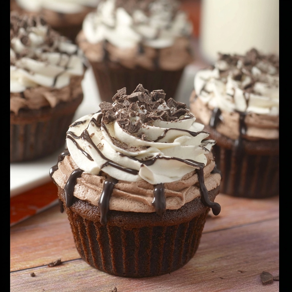 These Chocolate Mousse Cupcakes combine a rich triple chocolate cake base with a luscious, creamy mousse filling and a decadent chocolate frosting. Topped with crushed Oreos and mini chocolate chips, they are the perfect indulgent treat for chocolate lovers, ideal for parties or special occasions.
