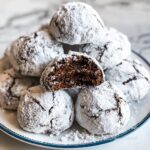 Once slightly cooled but still warm, gently roll each cookie in powdered sugar until completely coated. This step is key for achieving that iconic snowy exterior that makes these chocolate cookies feel extra special and festive.