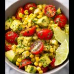 A fresh and vibrant Corn Salad with Avocado, featuring sweet corn, creamy avocado, juicy cherry tomatoes, and a tangy lime dressing. Perfect as a light side dish or a healthy snack, this salad combines crisp textures and bright flavors in just 15 minutes.