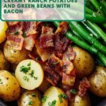 You can prep the green beans and potatoes ahead of time by washing, trimming, and chopping them. Store them covered in the fridge and then cook everything fresh when you’re ready. Bacon is best cooked just before serving for maximum crispiness.