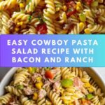 This Cowboy Pasta Salad Recipe is truly one of those recipes that’s easy to fall in love with and is guaranteed to bring smiles wherever it’s served. The combination of smoky, creamy, fresh, and tangy flavors hits all the right notes for a crowd-pleaser. I highly encourage you to give it a try and make it your own — it’s the perfect potluck hero or weeknight dinner side that you’ll want to come back to again and again.