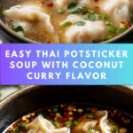 This Cozy and Flavorful Thai Potsticker Soup is an easy-to-make, comforting bowl packed with aromatic Thai flavors. Featuring tender potstickers simmered in a fragrant broth enriched with coconut milk, red curry paste, and fresh vegetables, this soup delivers a perfect balance of creamy, spicy, and savory notes. Perfect for weeknight dinners, this recipe is both quick and satisfying, ideal for anyone craving a warm and wholesome meal.