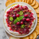 This vibrant Cranberry Jalapeno Dip is a perfect balance of tart, sweet, and spicy flavors combined with creamy richness. Fresh cranberries, zesty citrus, and a hint of mint are blended together with jalapenos for a subtle heat, all layered over fluffy whipped cream cheese. This no-cook dip is a festive and refreshing appetizer ideal for holiday gatherings or any occasion where you want a flavorful crowd-pleaser served with crackers or toasted baguette slices.