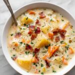 This Creamy Potato Soup with Bacon is a comforting and hearty dish perfect for chilly days. Made with tender Russet potatoes simmered in a rich and savory broth, blended with crispy bacon, sautéed vegetables, and a touch of cream, this soup offers a perfect balance of creamy texture and smoky flavor. Easy to make on the stovetop, it’s a crowd-pleaser ideal for family dinners or casual gatherings.