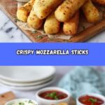 Crispy, golden mozzarella cheese sticks coated with a seasoned breadcrumb mixture and fried to perfection, served hot with ranch dressing and marinara sauce for dipping. A quick and delicious appetizer or snack perfect for any occasion.