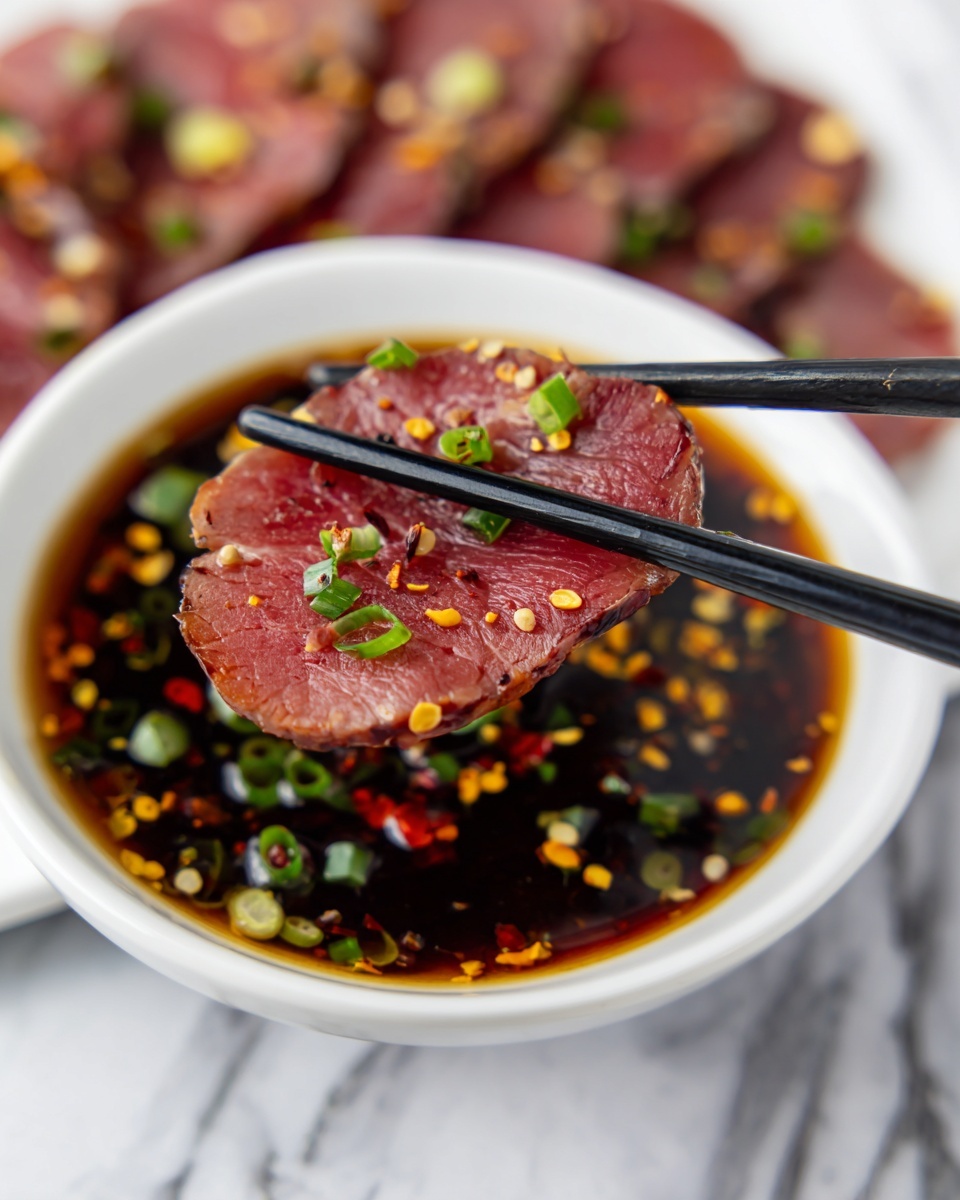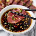 If you want to impress guests, consider plating the beef over a bed of mixed greens or baby kale, then drizzling with Nam Jim Jaew for a salad fusion twist. Another idea is to wrap thin slices of beef in lettuce leaves with a spoonful of the dipping sauce and fresh herbs for flavorful Thai-style bites that are perfect for sharing.