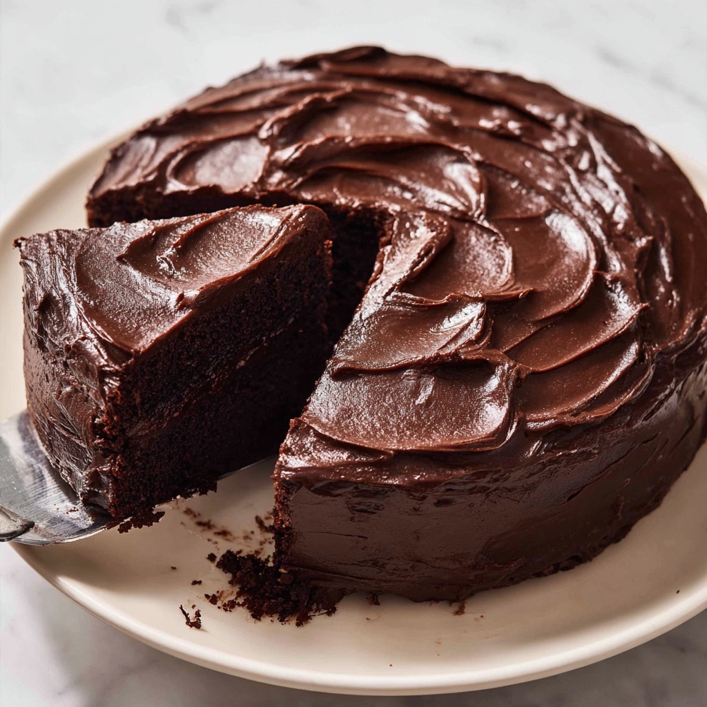 Spread the fudge frosting evenly over the cooled cake. For extra flair, let it set slightly before serving to achieve a beautifully glossy finish. This finishing touch turns a fantastic chocolate cake into an unforgettable indulgence.