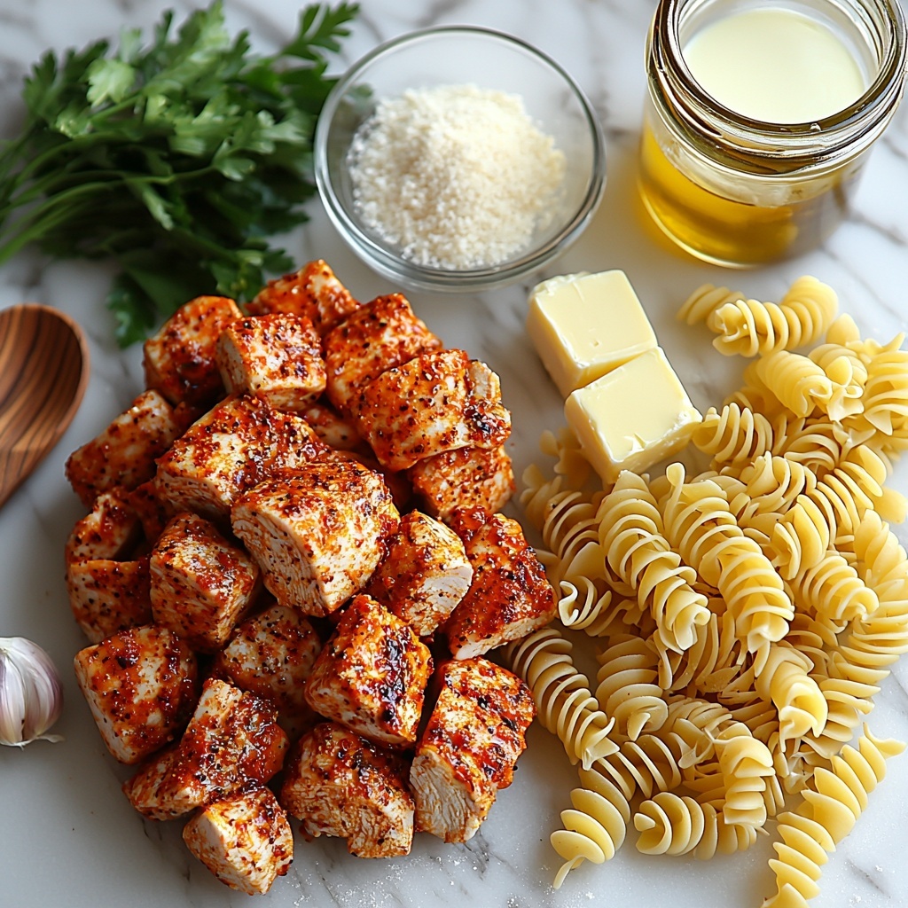 These ingredients may look simple, but each one plays a crucial role in creating the magic behind the Garlic Butter Chicken Bites with Spicy Cajun Alfredo Twisted Pasta Recipe. From the Cajun seasoning’s smoky kick to the richness of heavy cream and Parmesan, every component builds layers of flavor and texture that make this dish unforgettable.