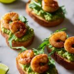 These Garlic Shrimp and Avocado Crostini are a flavorful and elegant appetizer featuring crispy baguette slices topped with creamy avocado, peppery arugula, and perfectly seasoned garlic shrimp. Quick to prepare and bake, they offer a delightful combination of textures and tastes ideal for entertaining or a light snack.