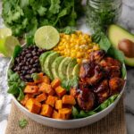 Healthy BBQ Chicken Bowls with Sweet Potatoes Recipe leftovers keep well in airtight containers in the refrigerator for up to 3 days. Store the components separately if possible to maintain freshness — cook chicken, roasted sweet potatoes, and heated beans and corn stack beautifully when reheated.