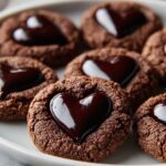 These Heart-Shaped Chocolate Thumbprint Cookies are a delightful twist on a classic treat, combining rich cocoa-flavored cookie dough with a sweet raspberry jam center. Perfectly soft and tender with a beautiful heart shape, these cookies make a charming gift or a special dessert for any occasion.