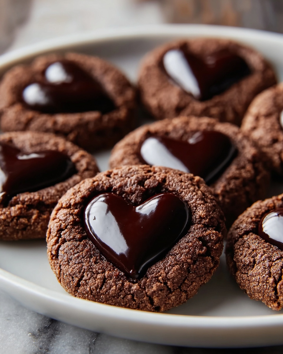 Heart-Shaped Chocolate Thumbprint Cookies Recipe
