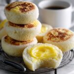 Once cooked, transfer the muffins to a wire rack to cool. For that classic English muffin texture, split each muffin open with a fork rather than cutting — this helps preserve the nooks and crannies that make these muffins so perfect for soaking up butter, jam, or eggs.