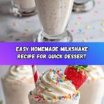 This Homemade Milkshake recipe is a quick and delicious treat made with creamy ice cream and full-fat milk, blended to smooth perfection. Customizable with chocolate syrup or fruit, it’s garnished beautifully with whipped topping, sprinkles, and cherries or strawberries, making it a classic dessert favorite for two.