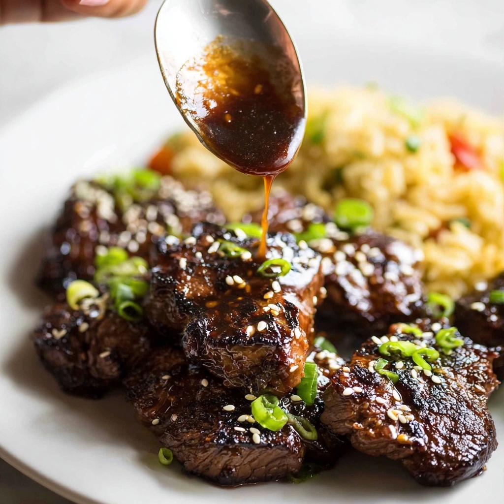 A sprinkle of finely sliced green onions adds a fresh, mild oniony crunch that balances the rich sauce, while toasted sesame seeds bring a nutty flavor with a pleasant bite. These simple garnishes make the dish pop visually and texturally, elevating it to something special just by the finishing touches.