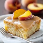 Simple is often best — a dusting of powdered sugar or a dollop of whipped cream complements the cake beautifully. For a fresh touch, top slices with thin peach wedges or sprigs of mint. These garnishes add a pop of color and an inviting freshness that pairs perfectly with the cake’s rich sweetness.