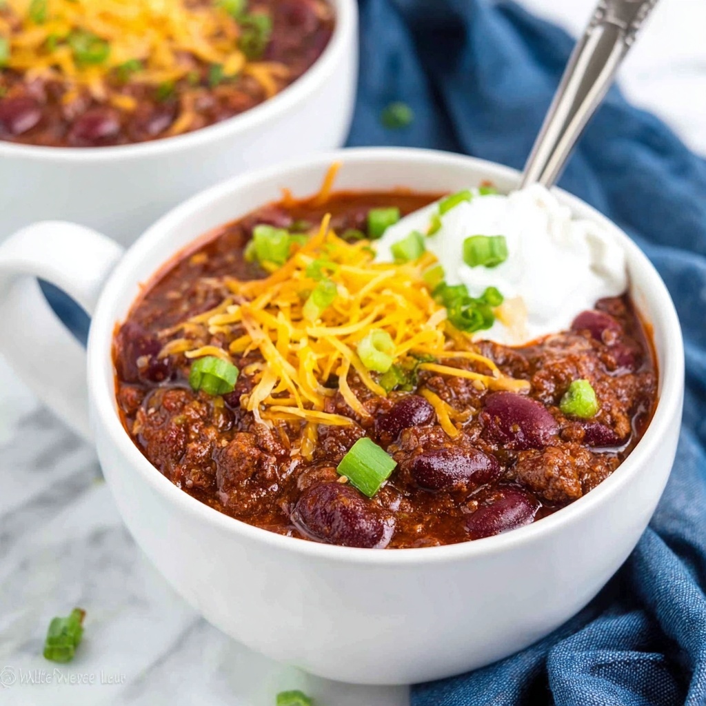 A big part of the joy in serving this chili comes from the toppings. Try shredded cheddar or Monterey Jack cheese for melty richness, a dollop of sour cream for creamy contrast, and fresh sliced green onions or cilantro to brighten things up. Crushed tortilla chips or a splash of hot sauce also make fantastic add-ons.