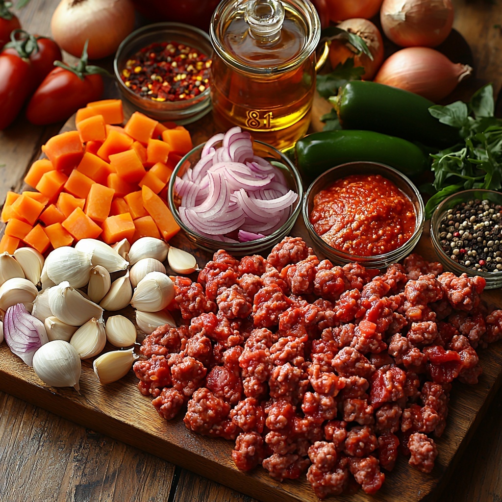 As simple as this list looks, every ingredient plays a crucial role in building layers of flavor and texture. From the savory beef to the spicy jalapenos and the sweet undertones of brown sugar, you’ll see how these essentials turn into a show-stopping chili.