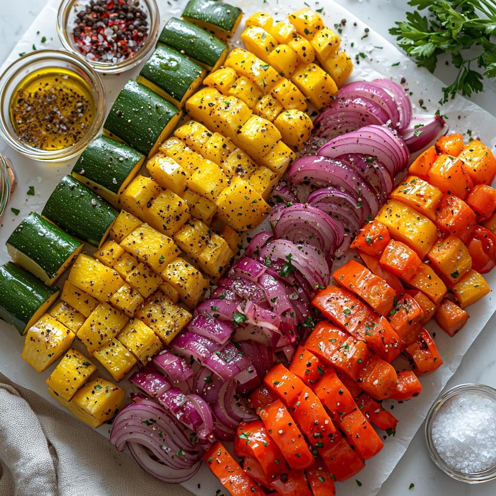 Start by heating your oven to 425 degrees Fahrenheit. This high heat is key for roasting the vegetables to caramelized perfection, allowing their natural sugars to develop while keeping a satisfying texture.