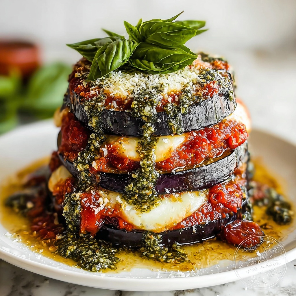 Italian Pesto Parmesan Eggplant Stacks Recipe
