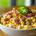 A creamy and spicy Jalapeno Popper Corn Salad combining fresh or canned corn with crisp bacon, sharp cheddar cheese, and a tangy cream cheese dressing. This easy-to-make side dish packs bold flavors and a satisfying crunch, perfect for summer gatherings or potlucks.