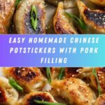 Jiaozi Chinese Potstickers are a delicious appetizer featuring a savory pork and napa cabbage filling wrapped in round dumpling wrappers, pan-fried to a crispy golden brown bottom, then steamed to juicy perfection. Served with a flavorful dipping sauce made of soy sauce, rice vinegar, and sesame oil, these homemade dumplings offer a classic taste of Chinese cuisine that’s fun to prepare from scratch.