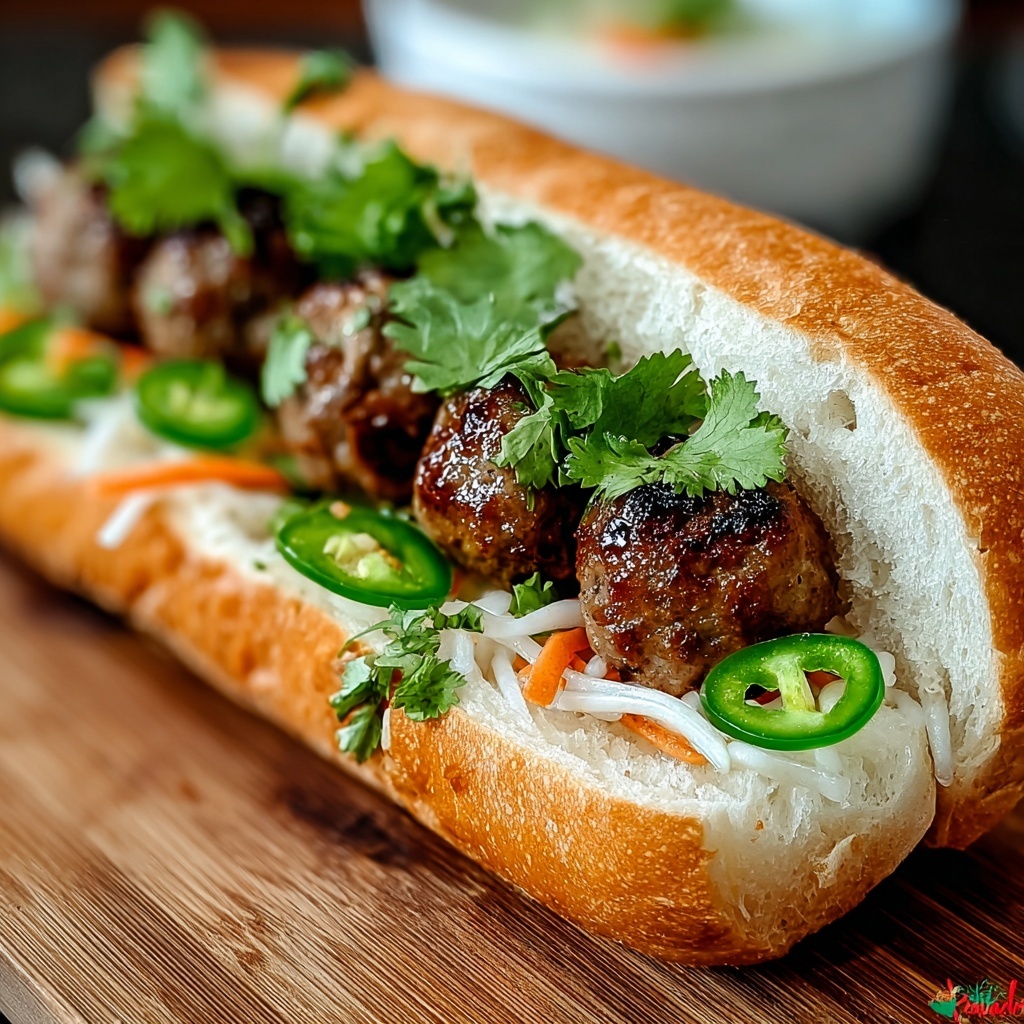 - Serving: Serve the assembled Banh Mi immediately to enjoy the contrast of crispy bread and juicy, flavorful meatballs.