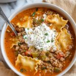 A comforting and hearty lasagna soup that combines all the flavors of classic lasagna in a warm, easy-to-make soup. Perfect for a cozy meal, this recipe features ground beef or Italian sausage, tomatoes, tender noodles, and a cheesy topping made with ricotta, mozzarella, and Parmesan.