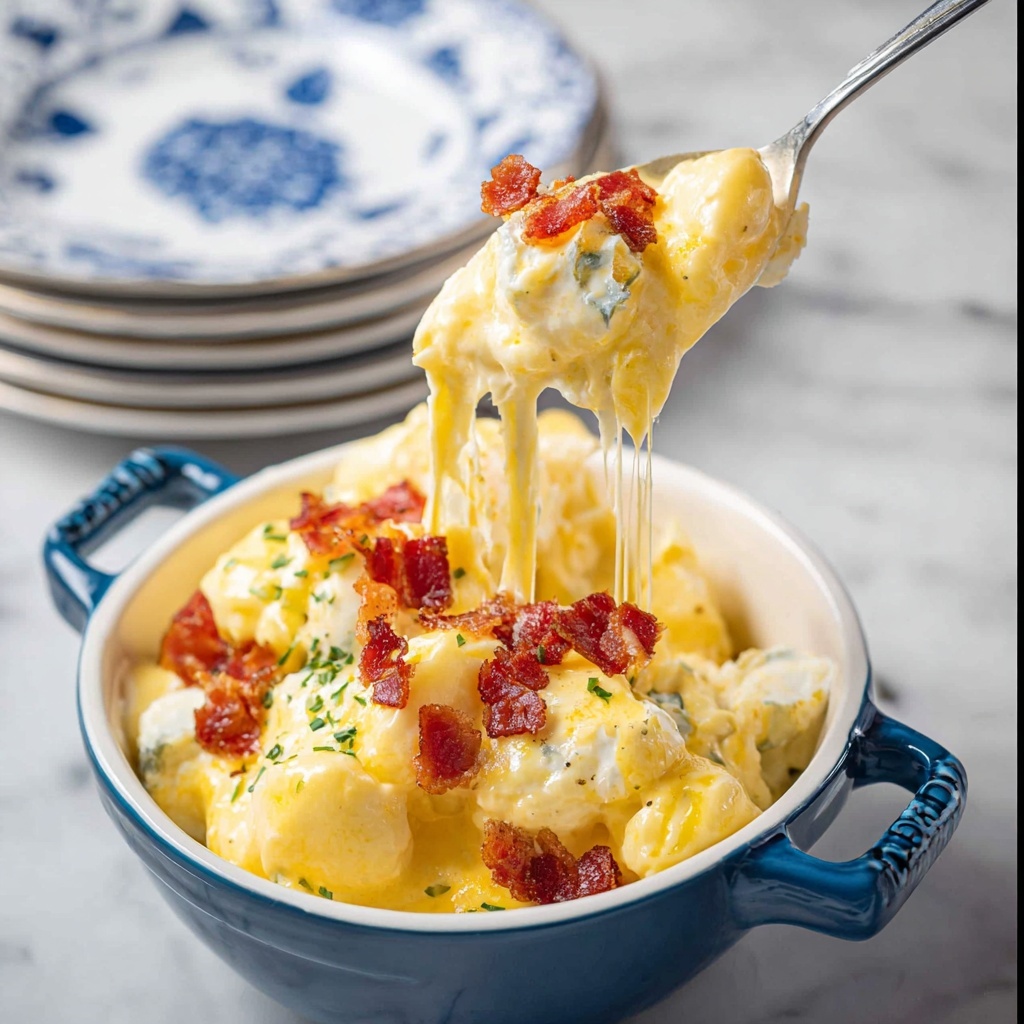 Once out of the oven, garnish generously with chopped chives, which add a fresh, mild onion flavor and a pop of color that brightens the entire dish. Serve immediately to enjoy the creamy, cheesy goodness at its peak.