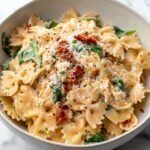 Serve this pasta in beautiful shallow bowls to showcase the vibrant colors of the sun-dried tomatoes and fresh basil. For gatherings, transfer to a warm serving dish and sprinkle freshly cracked pepper and herbs on top. You can even arrange some lemon wedges alongside for guests to lightly squeeze over, brightening the creamy richness with a zesty punch.