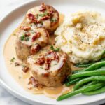 Return the pork medallions with any juices that collected on the plate back into the skillet, spooning generous amounts of the luscious sauce over them. Give everything a final seasoning check with salt and pepper to suit your taste, then serve immediately for the ultimate comfort food experience.