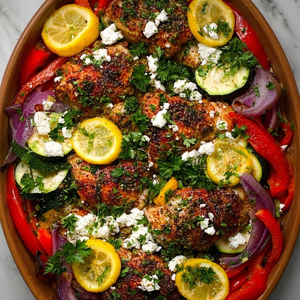 To impress guests or family, serve the chicken sliced against the grain atop a bed of the roasted veggies arranged on a large platter. Add a sprinkling of extra feta and a few sprigs of parsley around the edges. For a casual dinner, plate it sheet-pan style and let everyone dig in together—comfort food at its best!