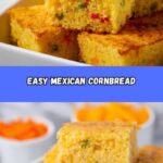 This Mexican Cornbread recipe is a deliciously moist and flavorful variation of traditional cornbread, enhanced with creamed corn, cheddar cheese, and colorful vegetables like green onions and red bell peppers. Perfectly baked to a golden crust, it complements chili, soups, or can be enjoyed on its own as a savory snack.