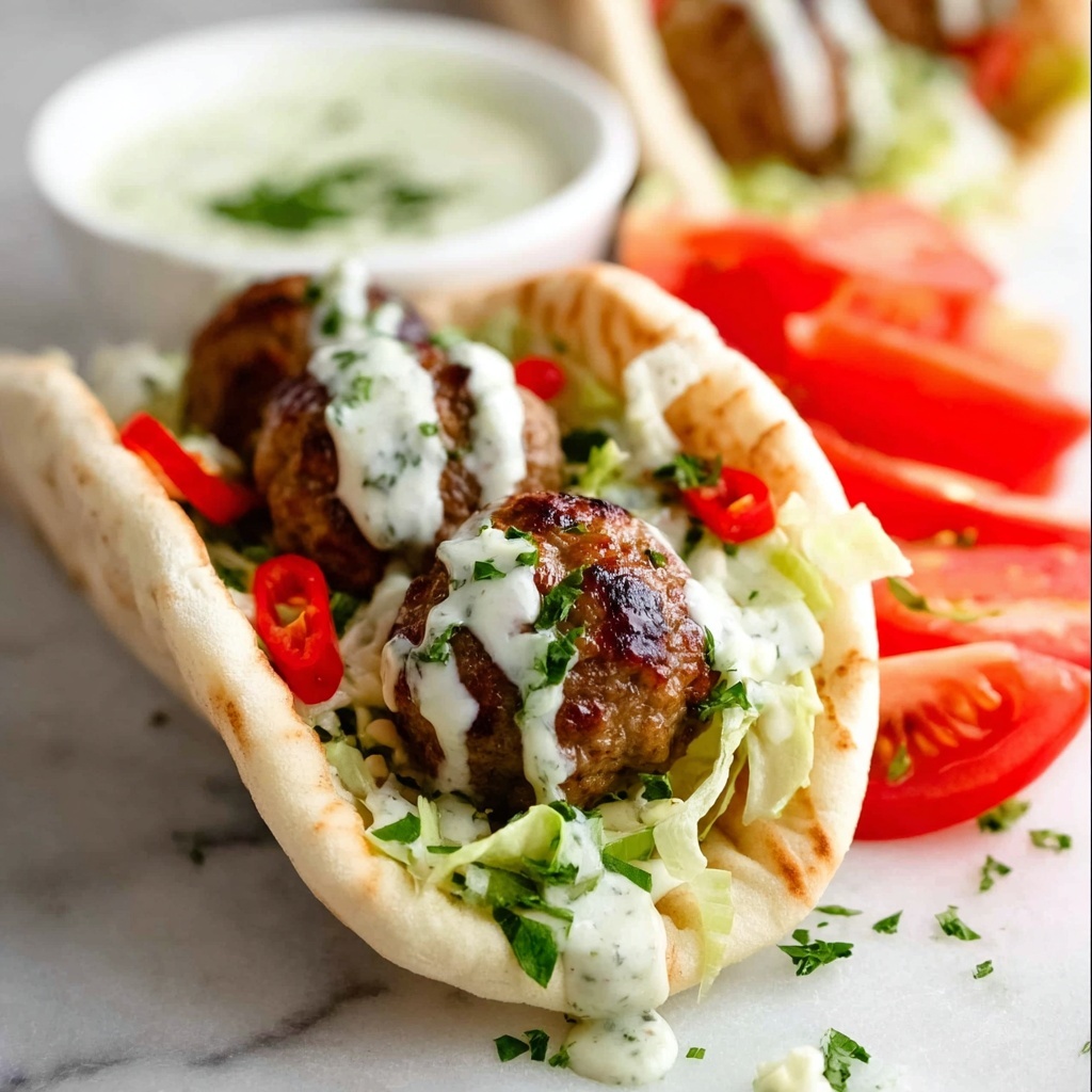 If pita pockets feel too casual, try serving the meatballs atop a bed of couscous with drizzles of yogurt sauce and garnishes on the side forming a composed plate. You could also turn this into a vibrant platter for sharing by serving the meatballs, sauce, pita, and fresh salad components separately, allowing everyone to build their own bites. This makes for a fun, relaxed meal where conversation fills the table.