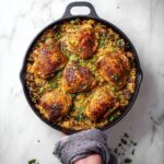 This Mushroom Orzo and Chicken Skillet is a flavorful one-pan dish combining tender, crispy chicken thighs with earthy mushrooms and tender orzo pasta. Cooked first on the stovetop to develop rich flavors and then finished in the oven, it delivers a comforting, balanced meal topped with fresh lemon juice, parsley, and shaved Parmesan for an inviting Mediterranean touch.