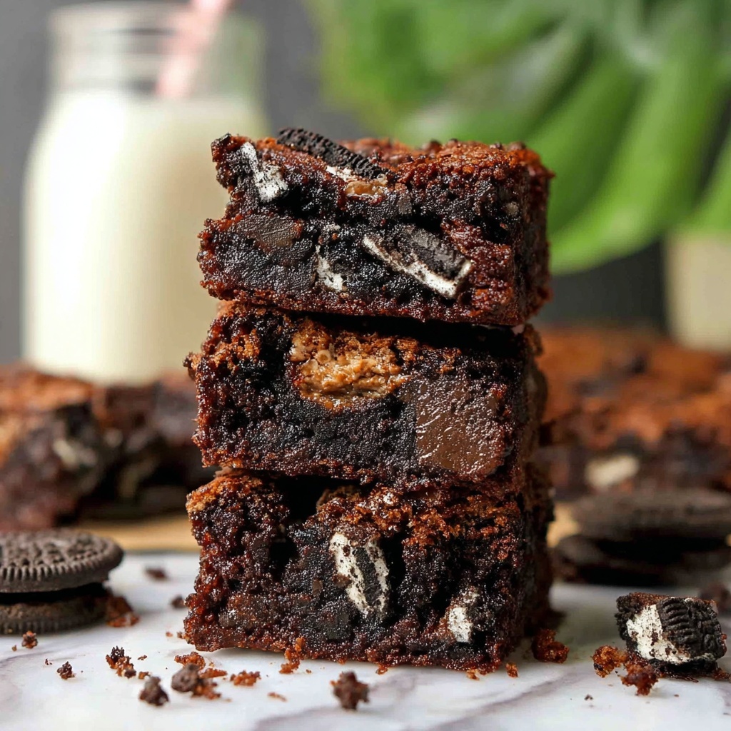 To make these Oreo brownies look even more tempting, sprinkle a little powdered sugar or drizzle warm chocolate sauce over each piece. Adding a few crushed Oreos on top can amp up the visual and flavor impact, making them look like they came straight from an elegant bakery.