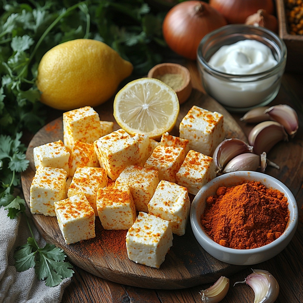 Start with preparing the marinade by whisking together plain yogurt, lemon juice, turmeric, chili powder, garam masala, minced garlic, grated ginger, and a pinch of salt in a bowl. Gently toss the paneer cubes in this heavenly mix until each piece is thoroughly coated. Letting the paneer soak up these spices for at least 30 minutes — and up to 2 hours if you have time — is essential to infuse maximum flavor.
