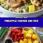 A flavorful and easy one-pan meal combining tender chicken thighs, sweet pineapple chunks, and fragrant jasmine rice cooked together with savory soy sauce and aromatic vegetables. This Pineapple Chicken and Rice recipe delivers a perfect balance of savory and sweet in every bite, ideal for a quick weeknight dinner.