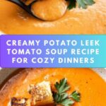 This comforting Potato Leek Tomato Soup combines the earthy sweetness of leeks and creamy Yukon Gold potatoes with the rich tanginess of Italian-seasoned stewed tomatoes. Perfect for a cozy meal, it’s blended to a smooth texture and finished with a touch of cream for richness. Ready in just 35 minutes, this soup is both satisfying and easy to make.