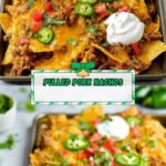 Bake the assembled nachos for 10 to 12 minutes until the cheese is bubbling and melted. Pull them out of the oven, add your favorite optional garnishes, and get ready to dive into cheesy, porky heaven.