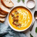Your soup will be naturally thick and luscious. Add a bit more water, about a cup, if you prefer a thinner consistency. At this stage, taste and adjust the seasoning with more salt or pepper as needed. Serve your Pumpkin and Cauliflower Soup with Ginger Recipe with a swirl of heavy cream if you’re feeling indulgent, bringing a luxurious finish to this vibrant bowl of comfort.